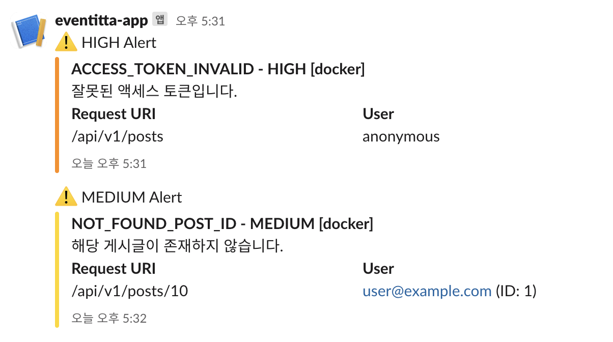 - 애플리케이션에서 발생하는 예외나 중요한 이벤트를 Slack 알림으로 전송하는 서비스