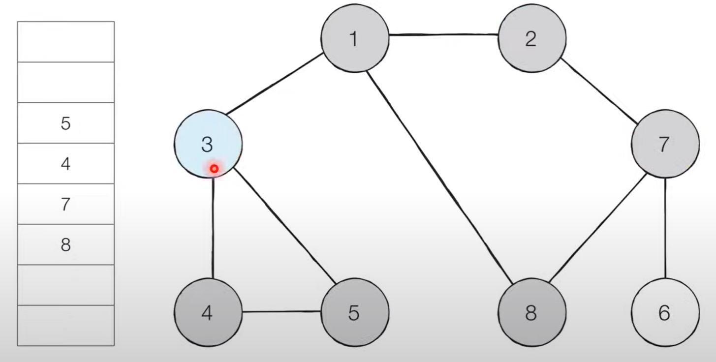 - 탐색 순서: 1 -> 2 -> 3 -> 8 -> 7 -> 4 -> 5 -> 6