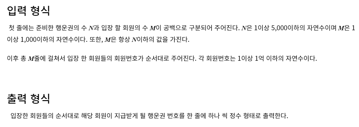 ArrayList<Integer> tickets = getTicketNumbers(n, m, ids);