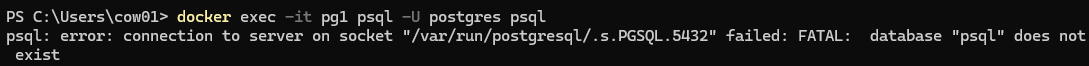 - 실패, 데이터베이스 "psql"이 존재하지 않습니다. 라는 에러가 발생